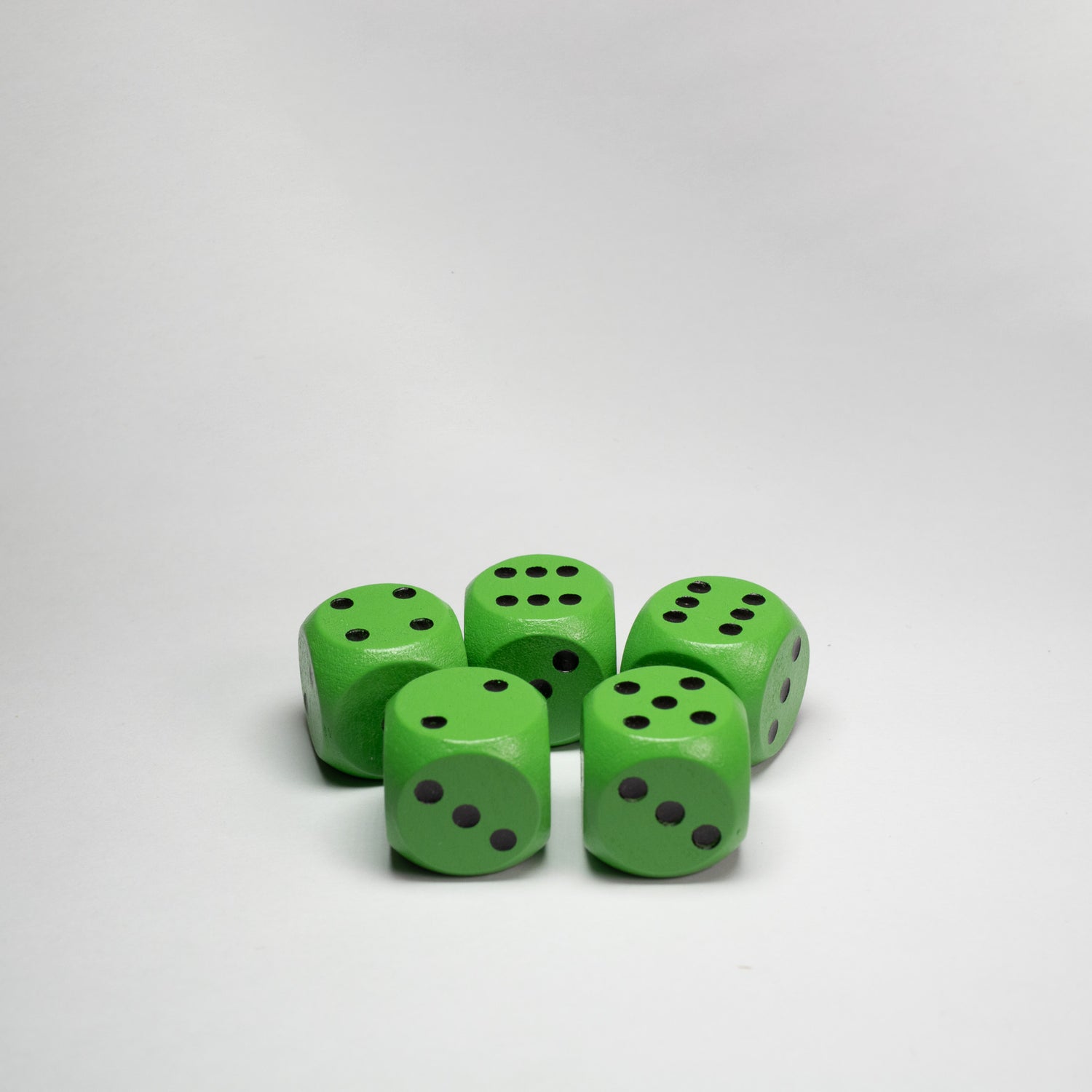 The classic wooden six sided 16mm die with indented pips, the D6 is a staple in most games from traditional family board games, to brand new print and play games. These packs of five green with black pips are great for almost any games you're designing.