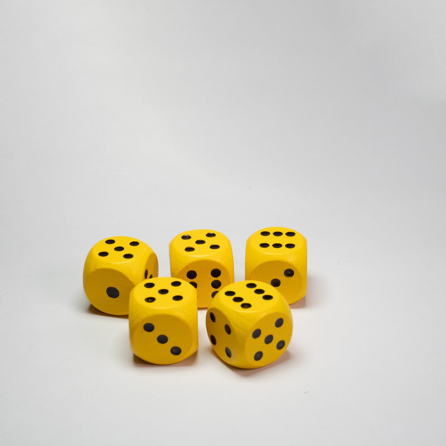 The classic wooden six sided 16mm die with indented pips, the D6 is a staple in most games from traditional family board games, to brand new print and play games. These packs of five yellow with black pips are great for almost any games you're designing.